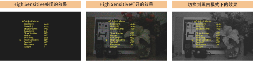 傲得華視AT-E230具有高靈敏感光功能,在低照度條件下,開啟可以增加感光靈敏度,提升夜視效果。